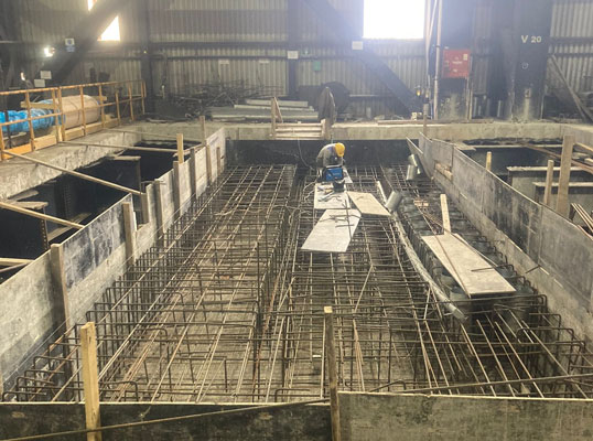 yapının ihtiyaçlarına gore evvelinde hazırlanan çelik konstrüksiyon iskeleti,